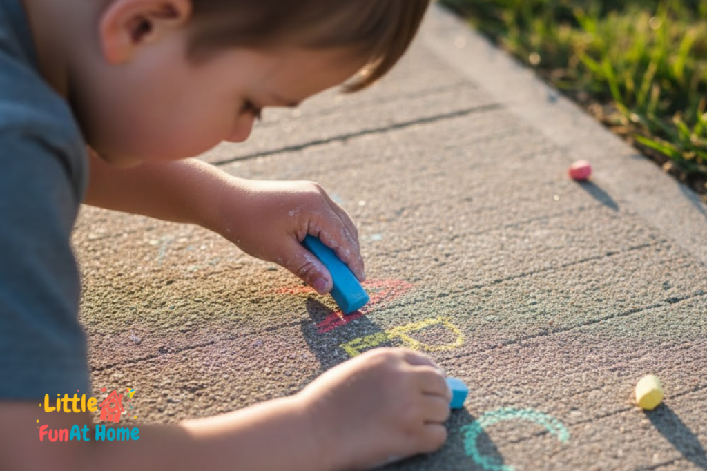 On a nice day, grab some colorful sidewalk chalk and head outside with your little one.