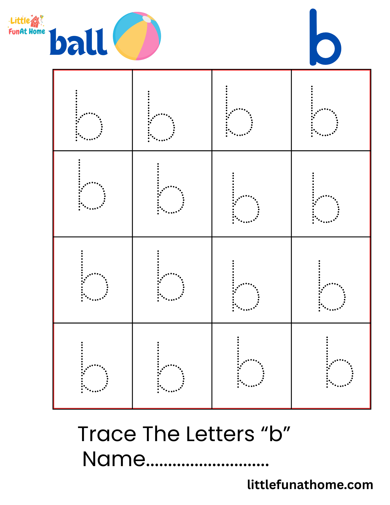 Kids will enjoy tracing the dotted lines while learning lowercase alphabet letters with fun, colorful letter pictures.