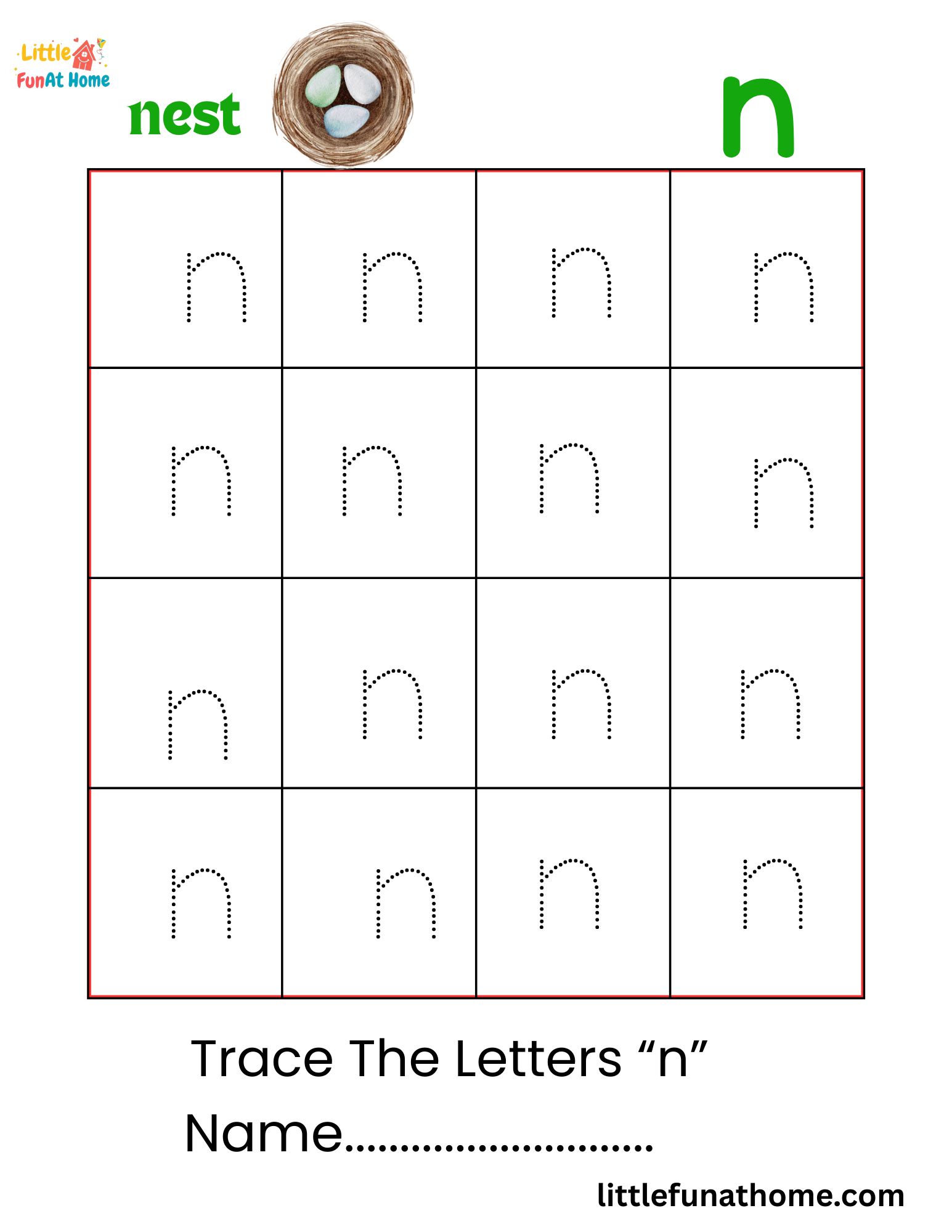 Explore more free learning worksheets for kids, including alphabet and letter tracing worksheets, number and shapes worksheets, and letter coloring pages for fun early learning.