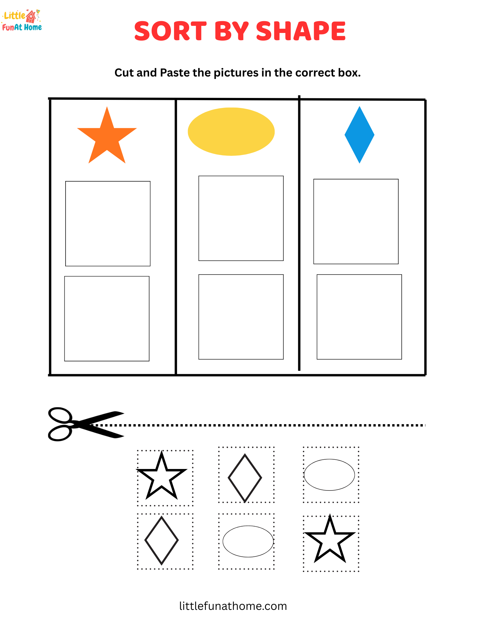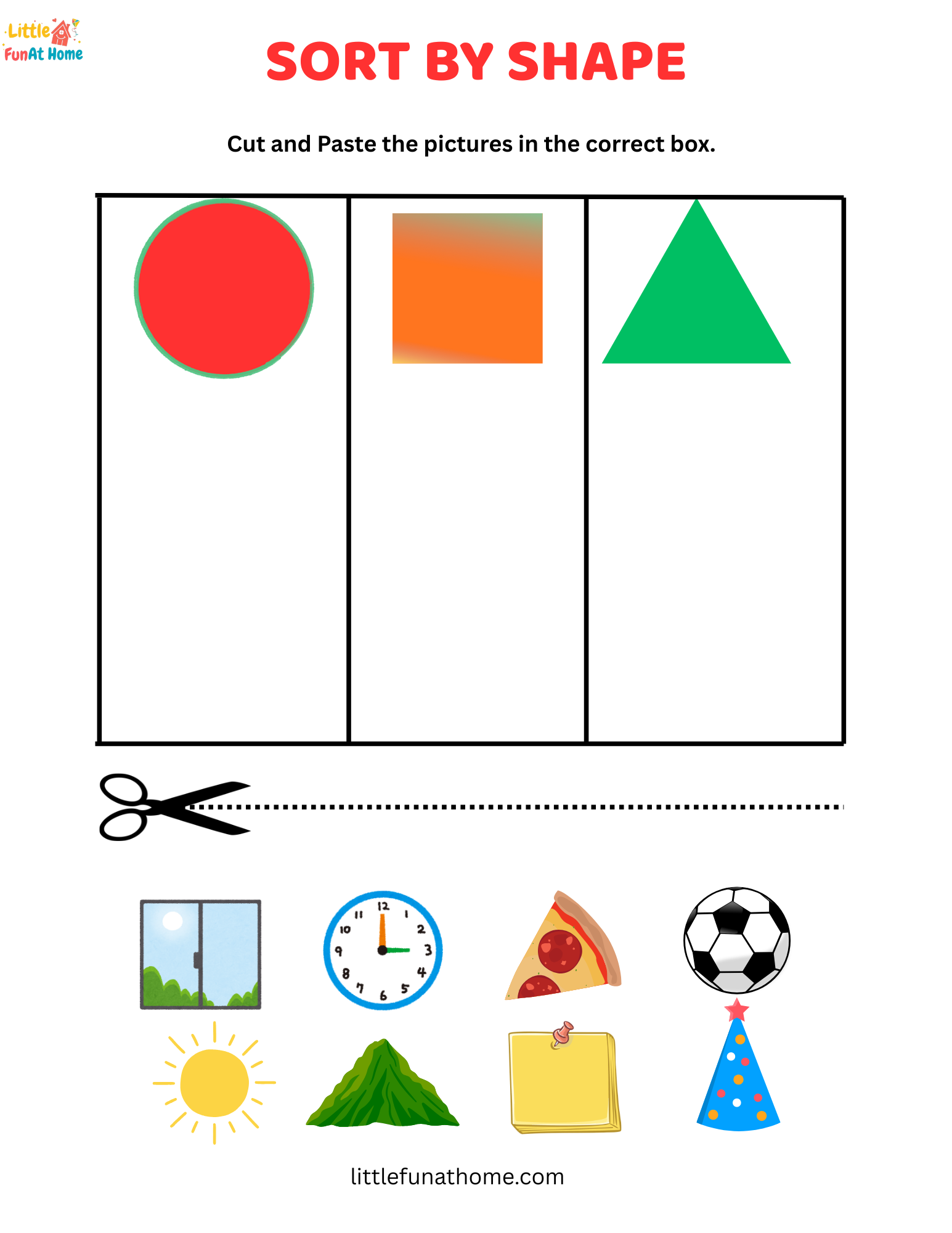 Help your kids explore shapes with these Free Printable Shape Matching and Sorting Worksheets! These PDF worksheets make it easy for little learners to identify, match, and categorize shapes while having fun. You can turn the sorting activity into a simple craft by letting kids cut the shapes with scissors and paste them in the correct boxes.
